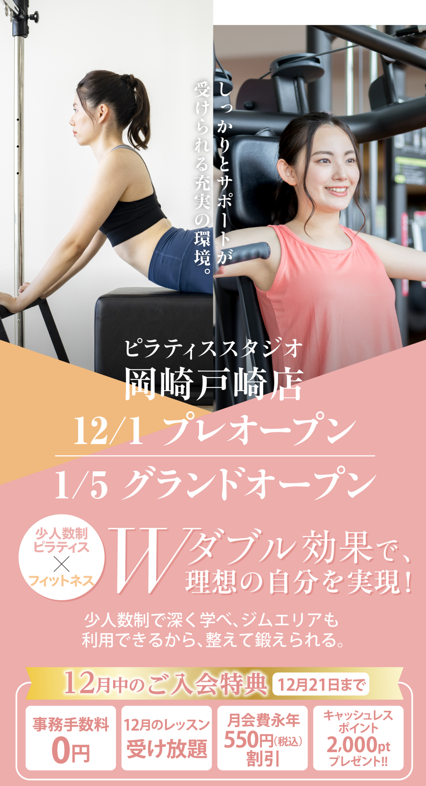 ピラティスもジムトレーニングも両方楽しめるお得なプランをご用意しています。